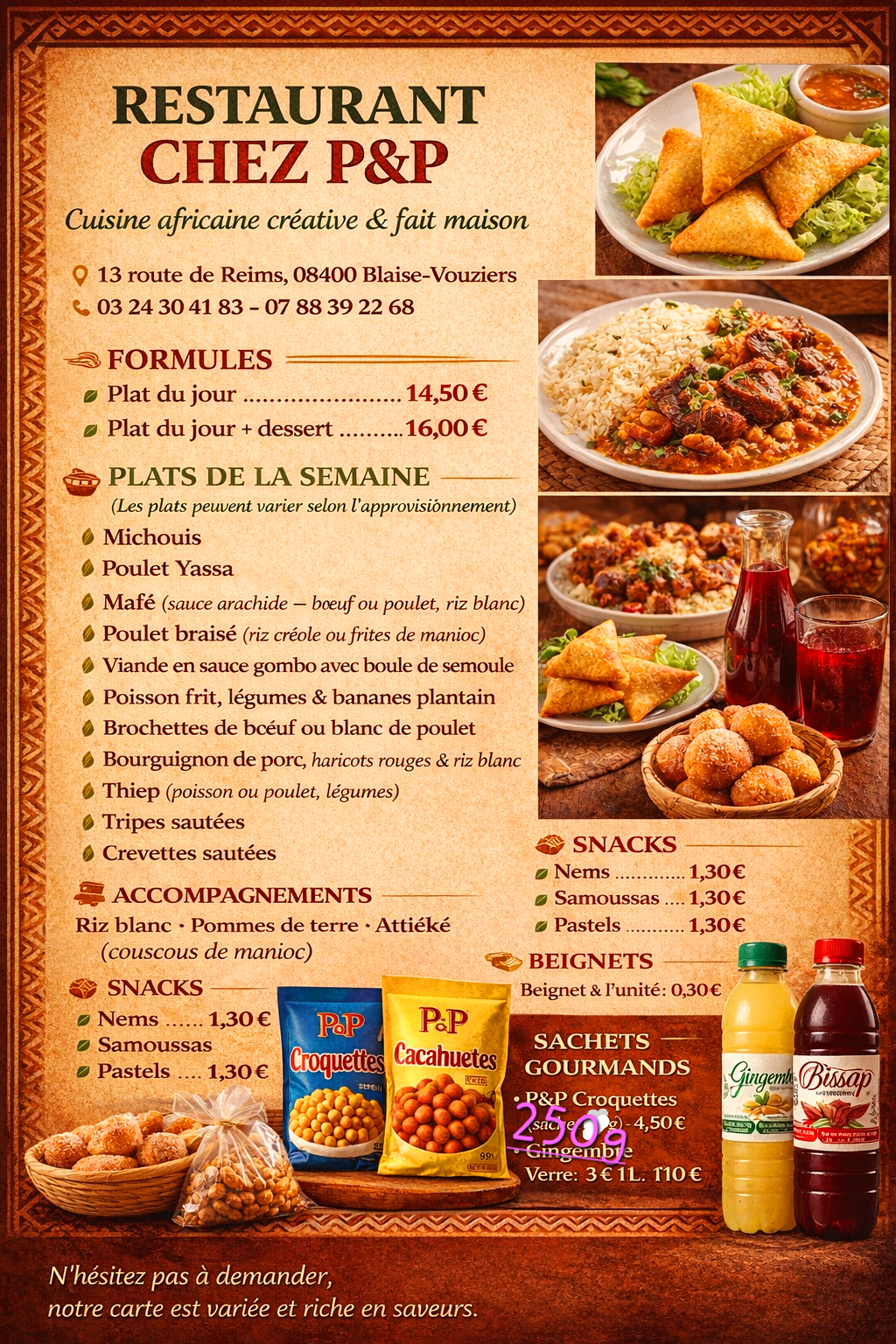 Voulez vous découvrir d'autres saveurs ? Nous sommes là venez au Restaurant chez P&P elles vous attendent ...