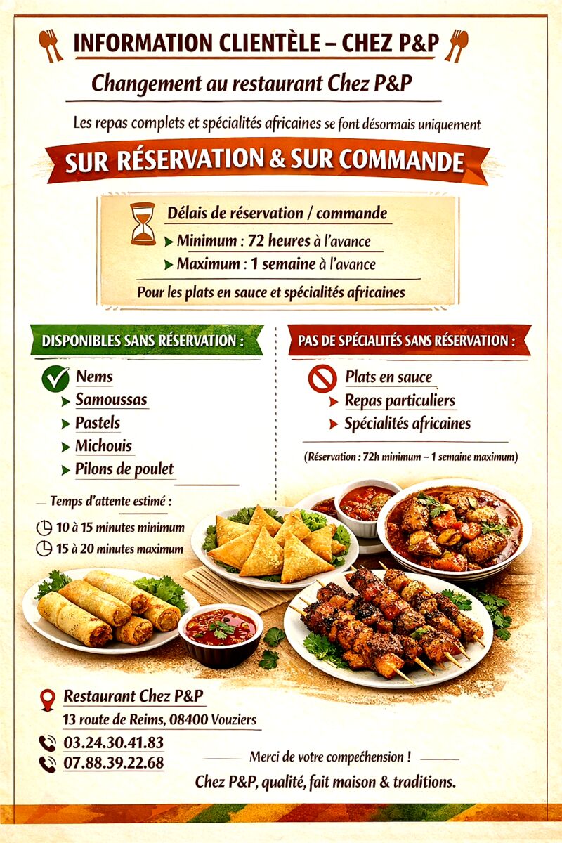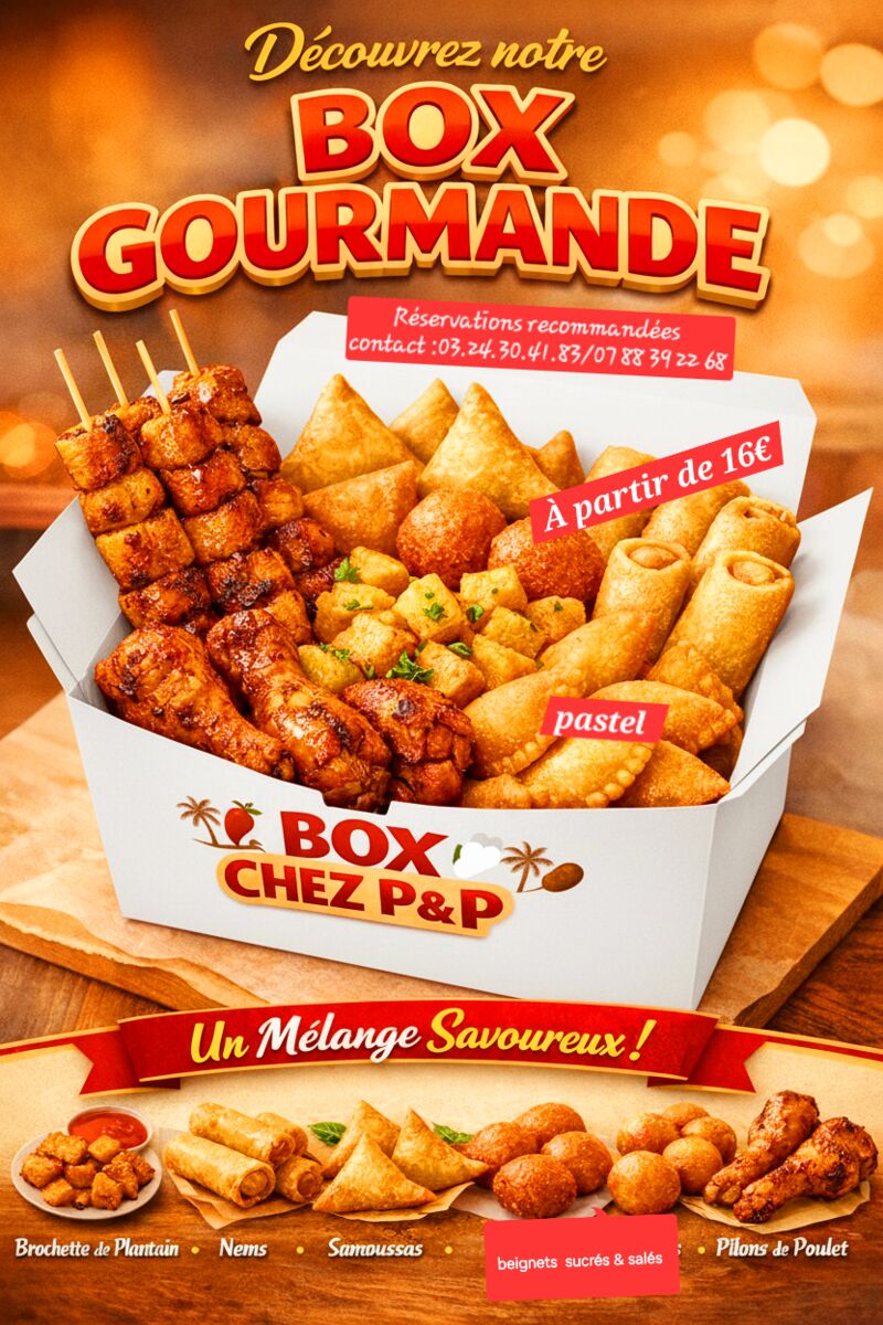 Chez P&P nous avons une diversité d'odeur,de saveurs. Le Choix entre emporter et manger sur place .